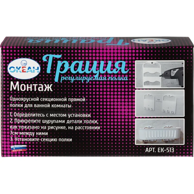 Полка для ванной Грация прямая 1-х ярусная EK-513