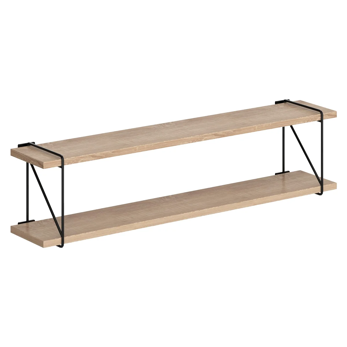 Универсальная полка с полкодержателями COFFEE для офисного или домашнего использования, размер – 860х214х166 мм, цвет - Дуб Сонома Светлый. Полка выполнена из ЛДСП 16 мм. Оснащена прочными металлическими креплениями. Все торцы надежно защищены кромкой ПВХ 2 мм.