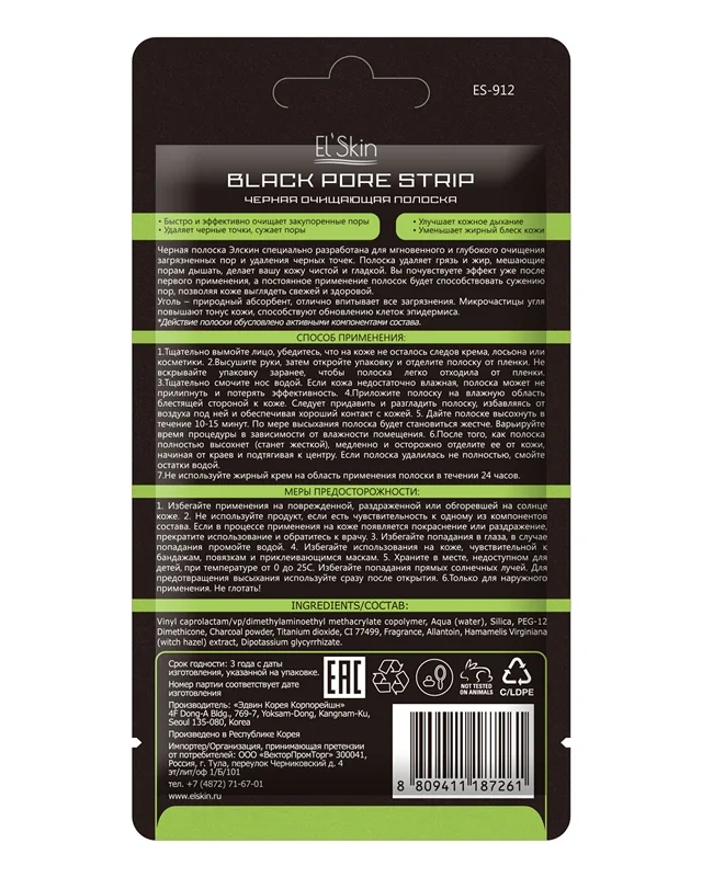 Полоска очищающая Elskin черная, 5г