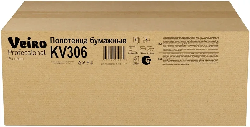 Veiro Professional Premium KV306 полотенца бумажные листовые, двухслойные, 200шт, белые