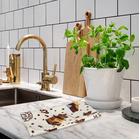 Полотенце для кухни Laima Кофе вафельное, 47х60см, с рисунком