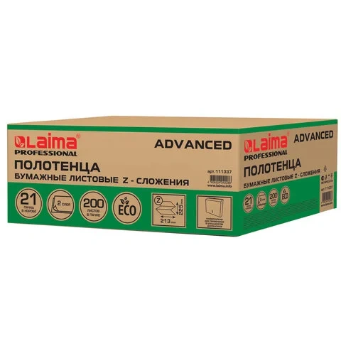 Бумажные полотенца Laima Advanced H2, листовые, 2 слоя, 200шт, белые, 21 пачка