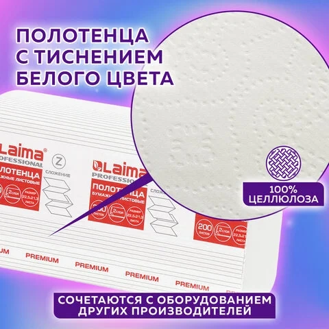 Бумажные полотенца Laima Premium H2, листовые, 2 слоя, 200шт, белые, 21 пачка