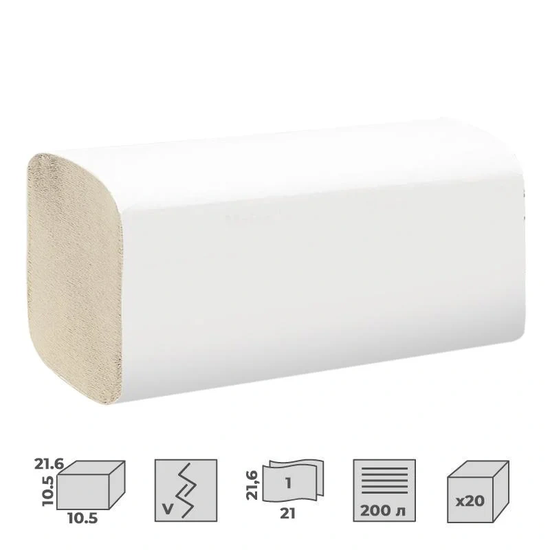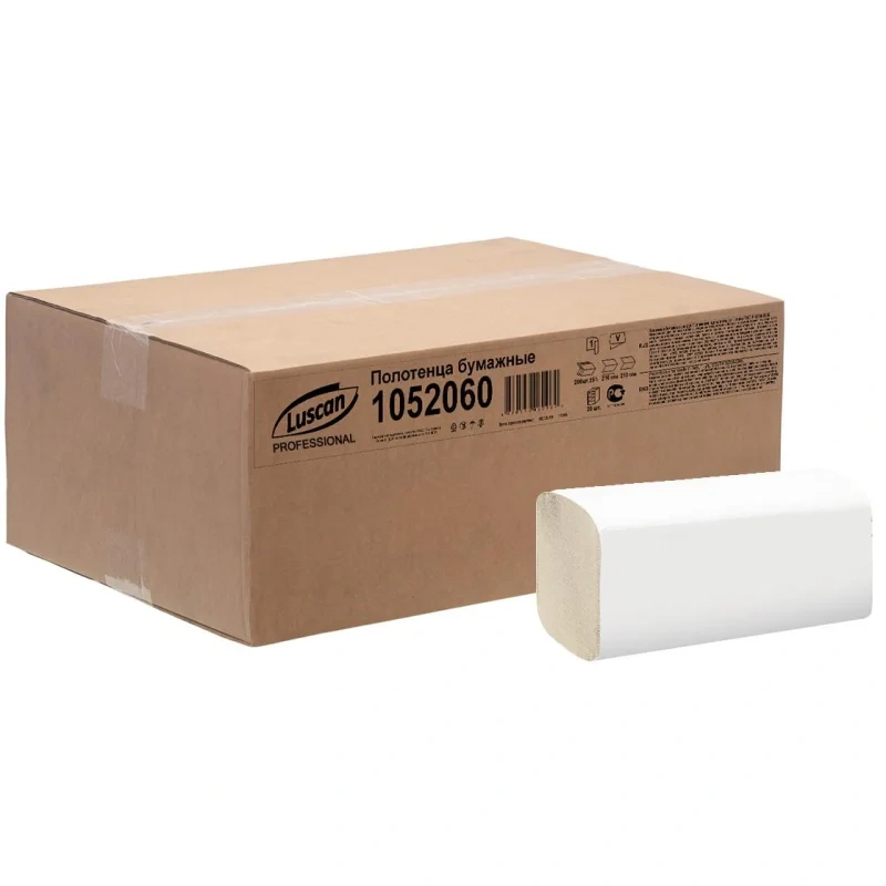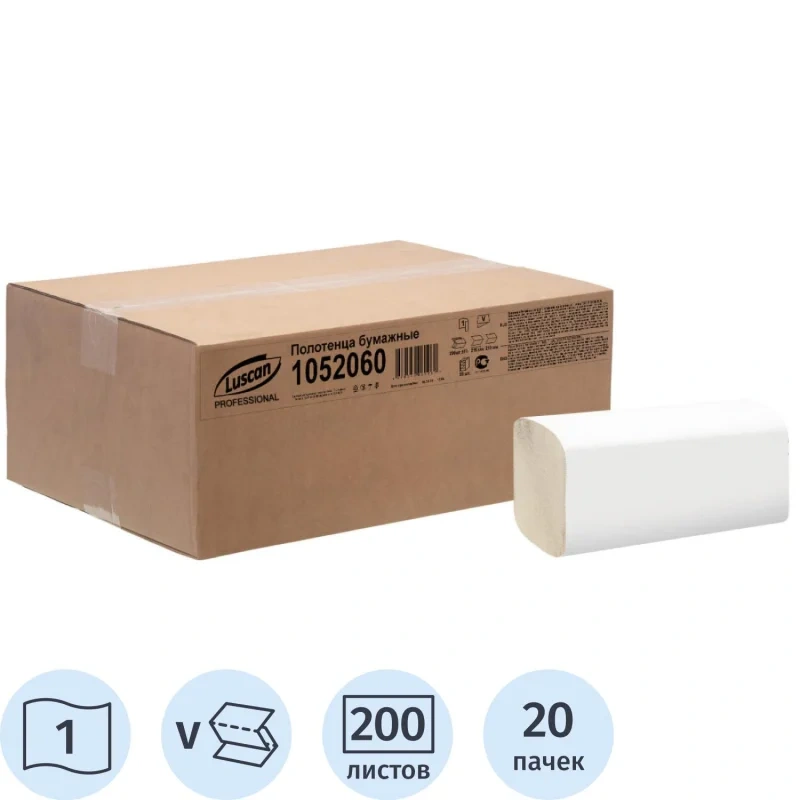 Бумажные полотенца Luscan Professional листовые, белые, V укладка, 200шт, 1 слой, 20пачек