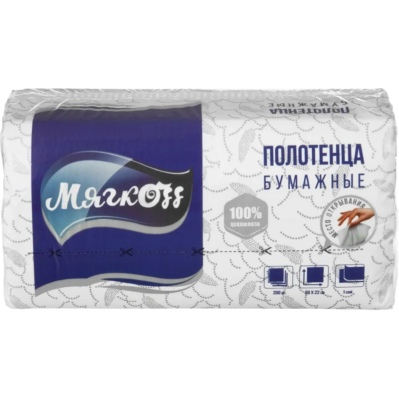 Полотенца бумажные листовые Мягкоff H3 V-сложение (ZZ) 1-слойные белые 200 листов