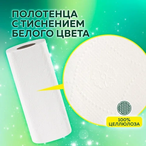 Изготовлены из 100% целлюлозы. В комплекте входят 4 рулона длиной 18 м каждый. Листы оптимального размера 23х22 см, с перфорацией. Влагопрочные, хорошо впитывают. Тиснение придает полотенцам дополнительную мягкость и позволяет впитывать еще больше жидкости.