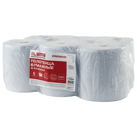 Бумажные полотенца Laima Premium H1, в рулоне, 2 слоя, 150м, белые, 6 рулонов