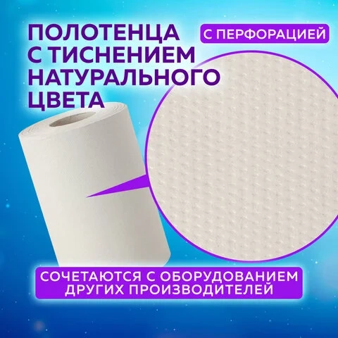 Полотенца имеют один слой и перфорацию отдельных листов. Тиснение придает полотенцам дополнительную мягкость и позволяет впитывать еще больше жидкости. Содержат 533 листа размером 19х22,5 см. Длина намотки составляет 120 м, внутренний диаметр втулки – 6 см. Сочетаются с оборудованием других производителей. 6 рулонов в комплекте. Произведены с использованием вторичного сырья. С заботой о сохранении природных ресурсов.