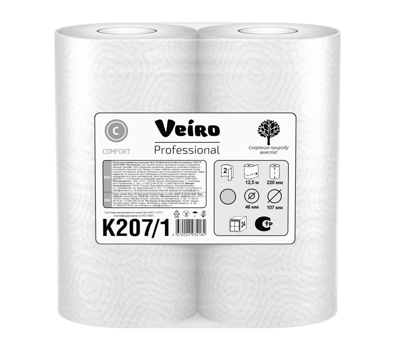 Полотенца бумажные в рулонах Veiro Professional Comfort K207/1