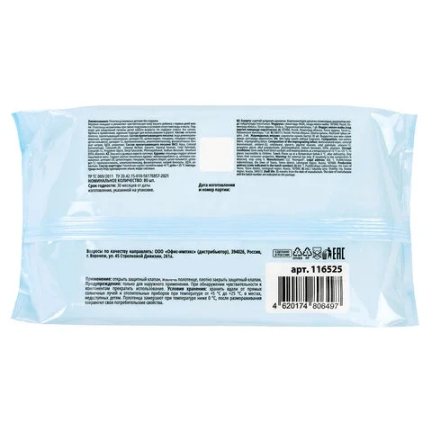 Удобная упаковка с крышкой герметично закрывается и позволяет брать необходимое количество салфеток. В пачке - 80 шт. Размер - 16,5х25 см.