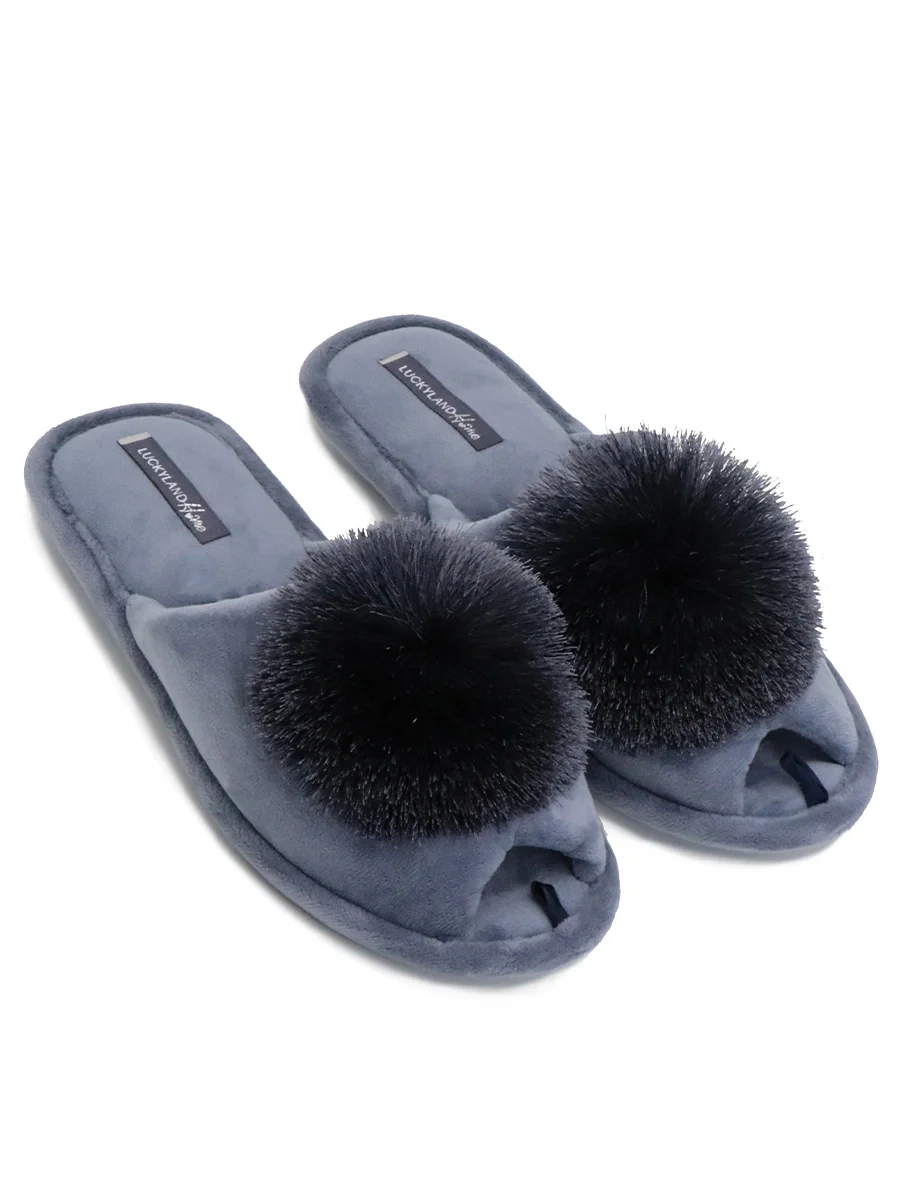 Тапочки женские Lucky Land открытый нос с цветным помпоном