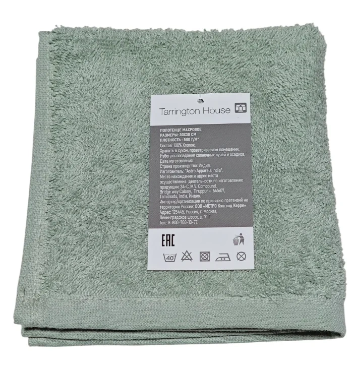 Tarrington House Полотенце хлопок зеленое махровое 500 г/м2, 30 х 30см
