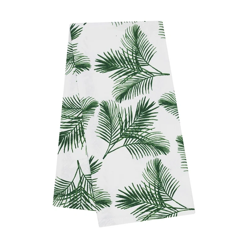 Имеет стильный дизайн с изображением еловых веток и приятный практичный сдержанный белый цвет. Будет красиво смотреться на любой кухне. Хорошо впитывает влагу, быстро сохнет, отлично переносит частые стирки, сохраняя вид и насыщенность цвета. Не оставляет ворса на руках и поверхностях, поэтому также может использоваться для протирания посуды.