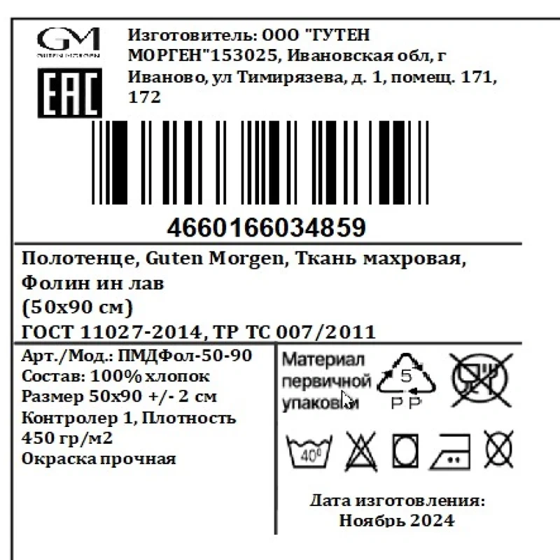 Полотенце махровое Guten Morgen Фолин ин лав, 50 x 90см