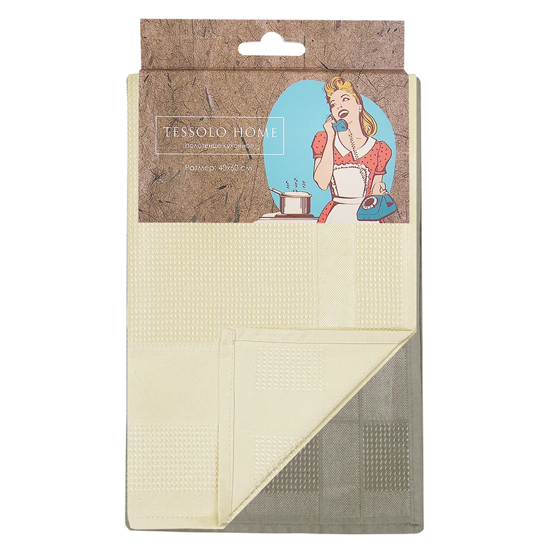 Полотенце произведено из натурального материала, имеет два обработанных края - слева и справа. Вафельные полотенца универсальны, но чаще всего их используют хозяйки на кухнях, для бытовых и хозяйственных потребностей, а также применяют в промышленности. Благодаря особенному, перекрестному, 'вафельному' плетению нитей хлопка, эти полотенца долго не истираются и сохраняют первоначальный вид. Полотенце способно удалить любые виды жидкостей и загрязнений, так как обладает отличными впитывающими свойствами, легко отжимается и быстро высыхает.