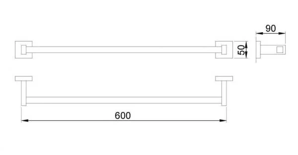 Полотенцедержатель глянцевый 600 мм Classic глянец из нержавеющей стали, квадратное.