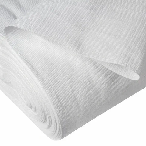 Вафельное полотно обладает высокой плотностью 100 (±10) г/м2, намотка в рулоне – 60 м, ширина полотна – 45 см.