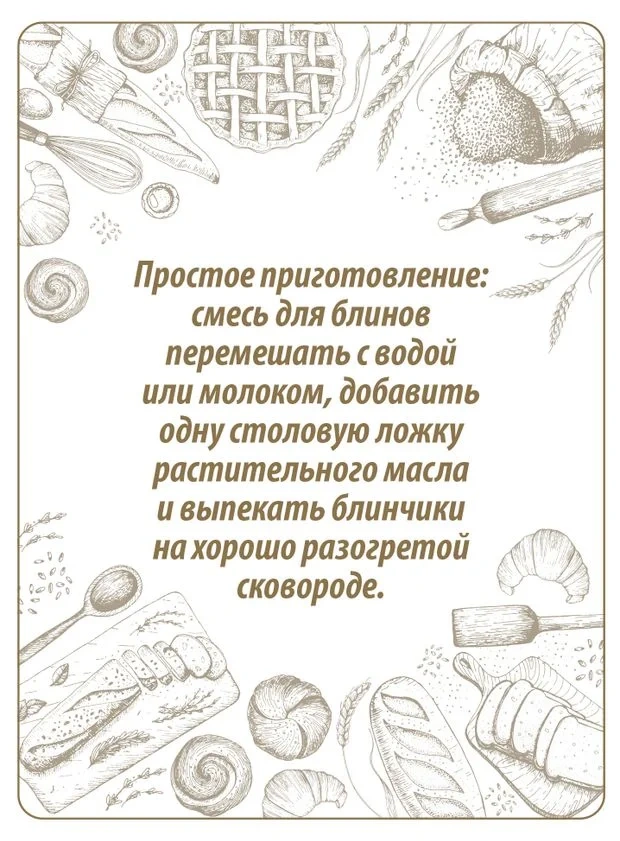 Полуфабрикат мучной для блинов и оладий Makfa 1 кг поможет сэкономить время, затрачиваемое на процесс приготовления пищи. Он уже включает все необходимое для аппетитных мучных десертов, потребуется лишь добавить подогретую воду либо молоко. Смесь, созданную на основе пшеничной муки, следует размешать до исчезновения комочков. Подготовленное тесто за счет входящих в состав компонентов становится пластичным и однор??дным. Оладьи или блинчики выпекаются на сковороде, предварительно смазанной маслом. Подавать их к столу можно с любым сладким сиропом, вареньем, сметаной или сгущенным молоком.