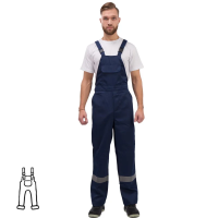 Спецодежда летняя полукомбинезон мужской л03-ПК (размер 64-66, рост 170-176) синего цвета. Предназначен для работников коммунальных и хозяйственных служб. Изготовлен из смесовой ткани с водоотталкивающей пропиткой (68% полиэфир, 32% хлопок), плотность ткани — 220 г/кв.м. Полукомбинезон с застежкой на пуговицы, нагрудным карманом с клапаном и двумя накладными боковыми карманами. Сигнальные элементы выполнены из световозвращающего материала.Соответствует стандарту ГОСТ 27575-87