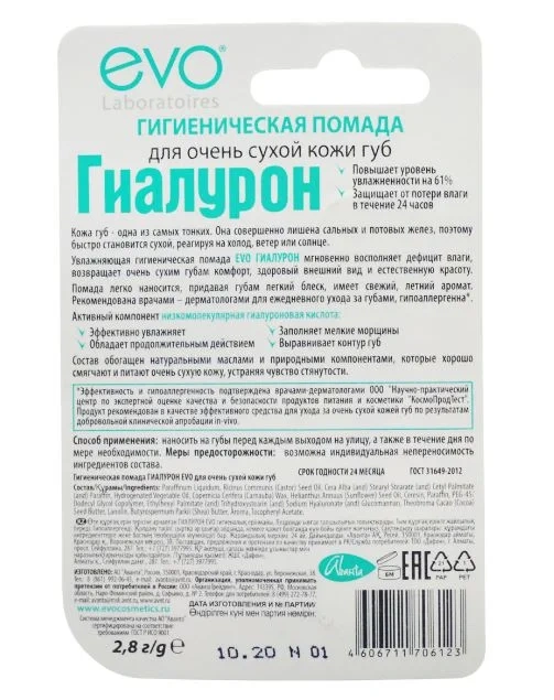Помада Evo гигиеническая гиалурон, 3г