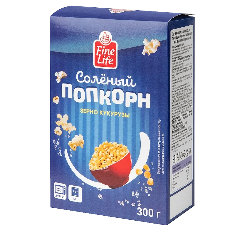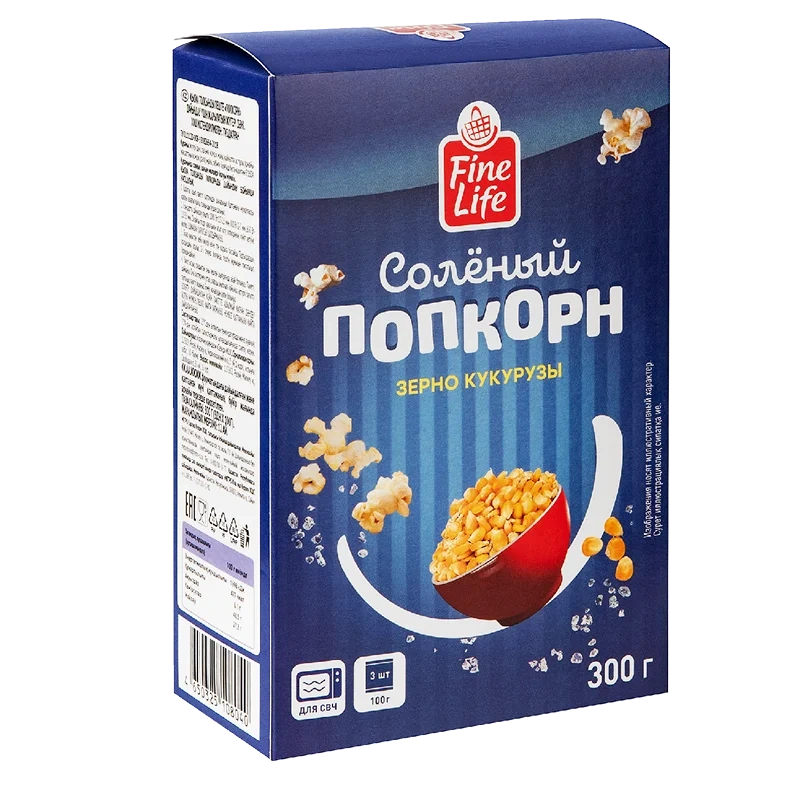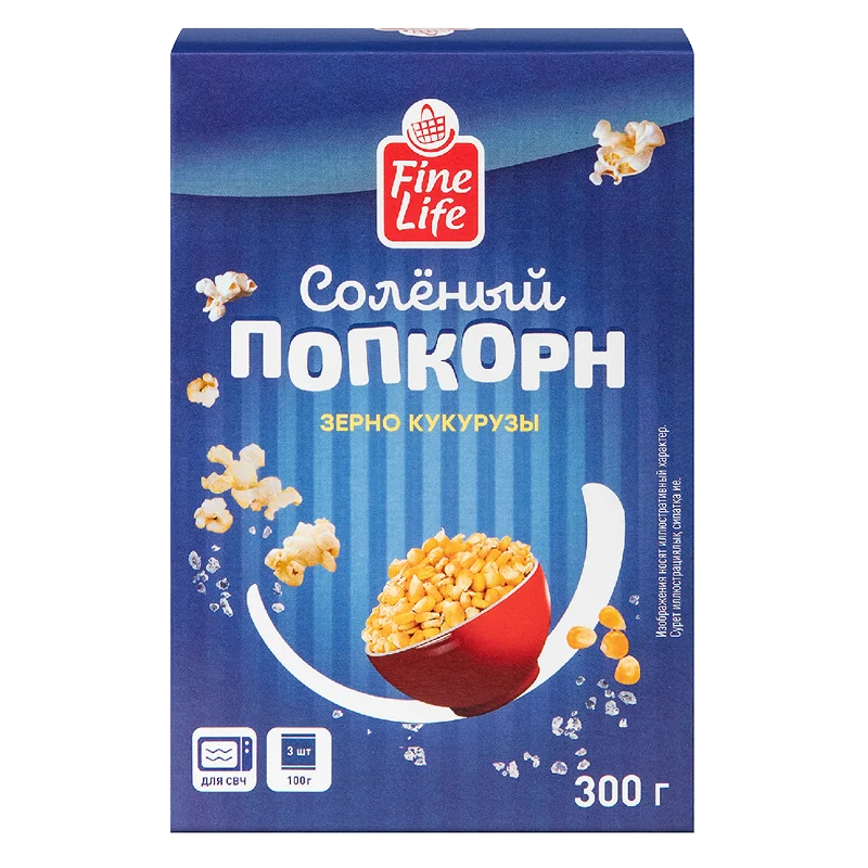 Fine Life Попкорн соленый (100г x 3шт), 300г