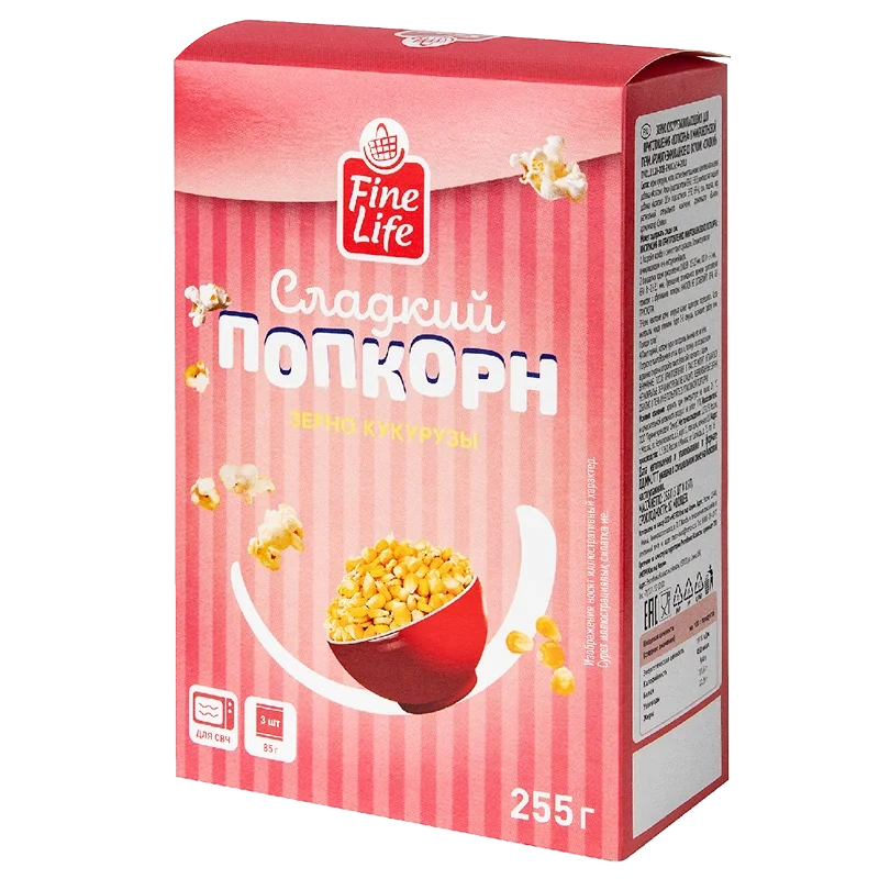 Fine Life Попкорн сладкий (85г x 3шт), 255г