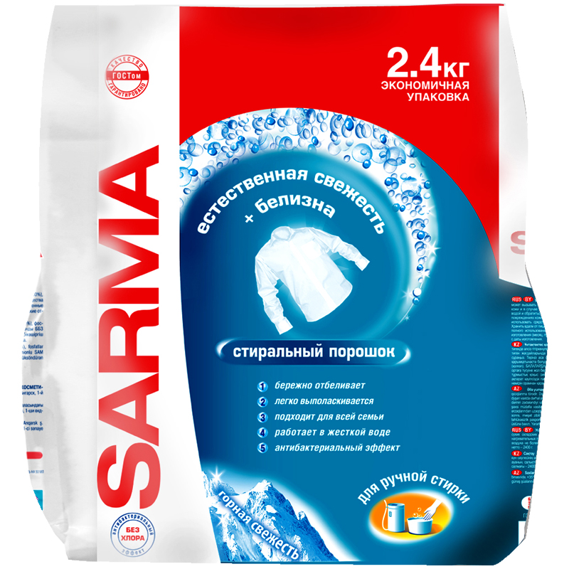 Порошок для ручной стирки Sarma 'Горная свежесть', 2,4кг