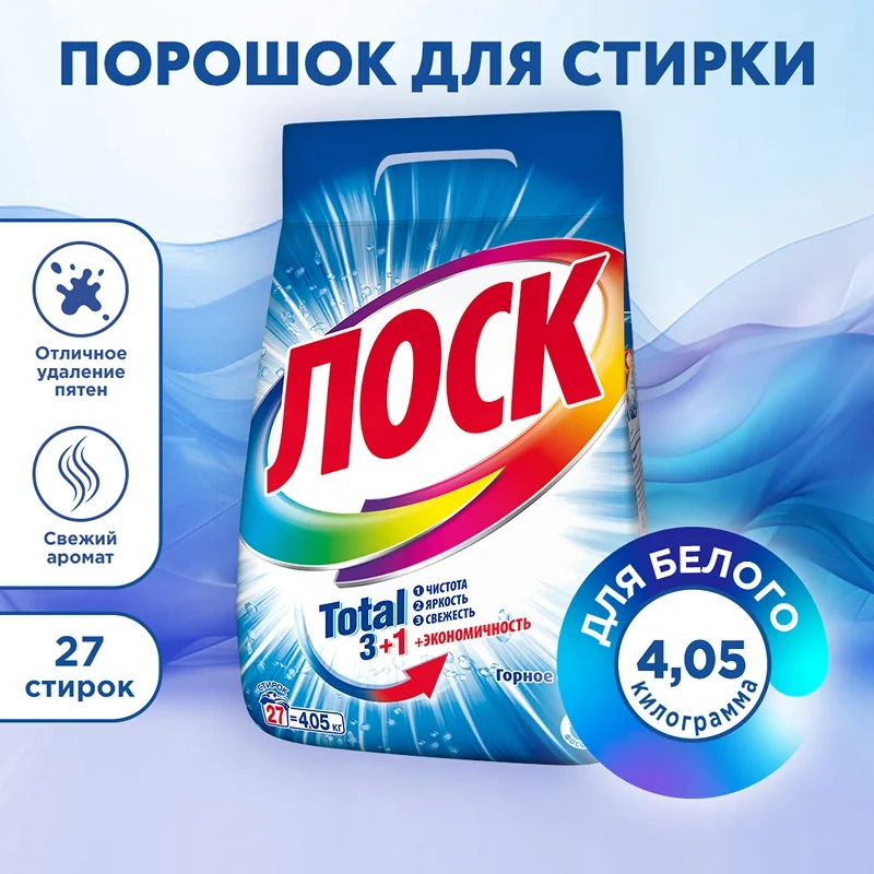Стиральный порошок Лоск Горное озеро для белого 27 стирок, 4.05кг