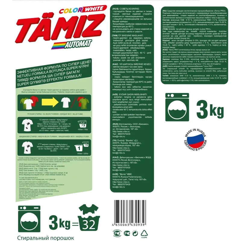 Порошок стиральный TAMIZ автомат универсал 3кг
