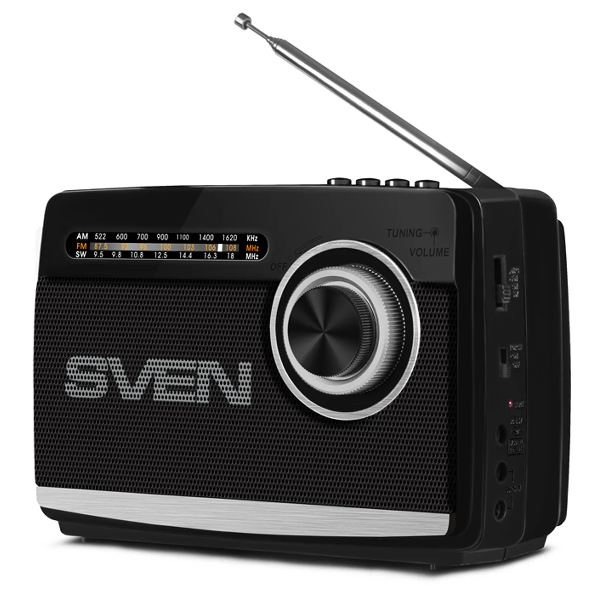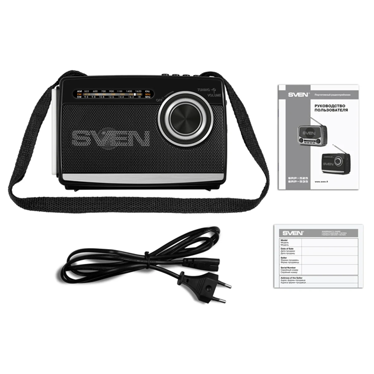 Портативная акустическая система Sven SRP-535, 3W, FM/AM/SW, USB, microSD, фонарь, аккумулятор, черн