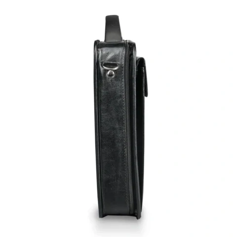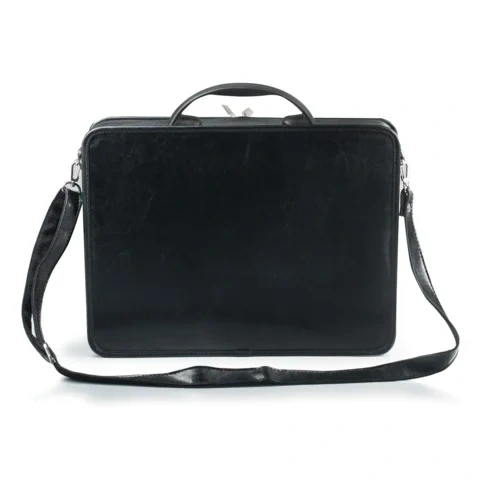 Вместительный аксессуар с каркасным основанием надежно защищает документы. Имеет три объемных внутрених отделения и карман на молнии. На внешней стороне объемный карман закрывается на клапан. Комплектуется плечевым регулируемым ремнем. Размер: 38х29х6 см.