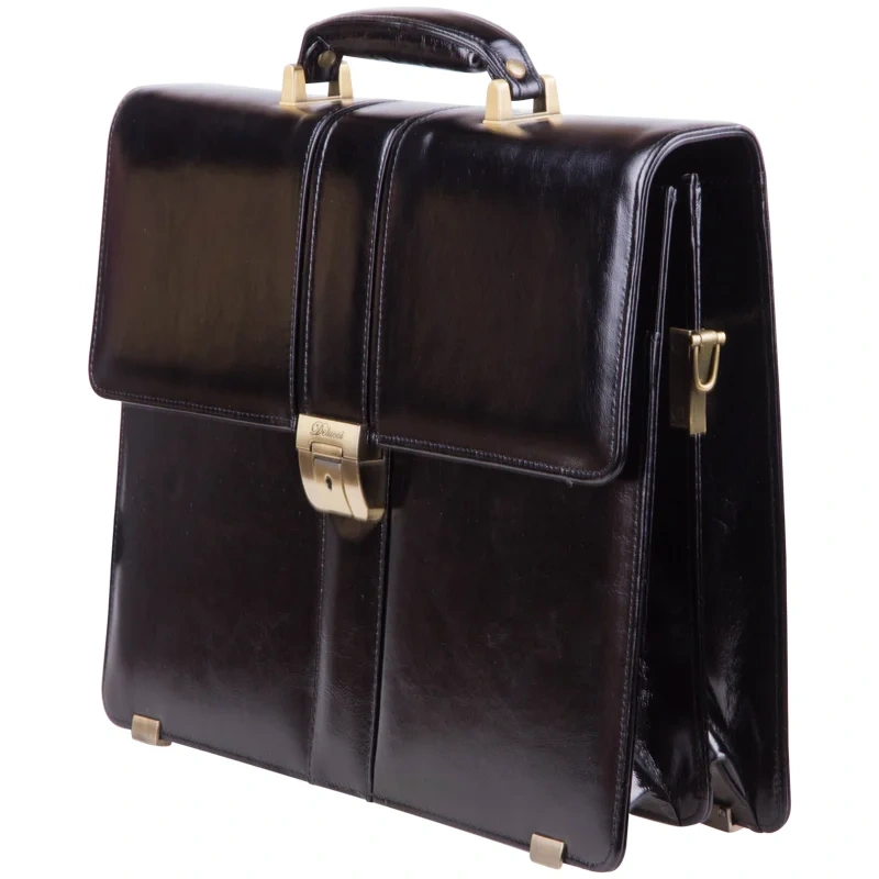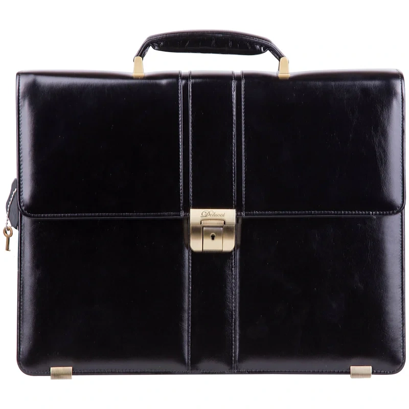 Портфель Delucci Гиперион 2 отделения, черный, натуральная кожа