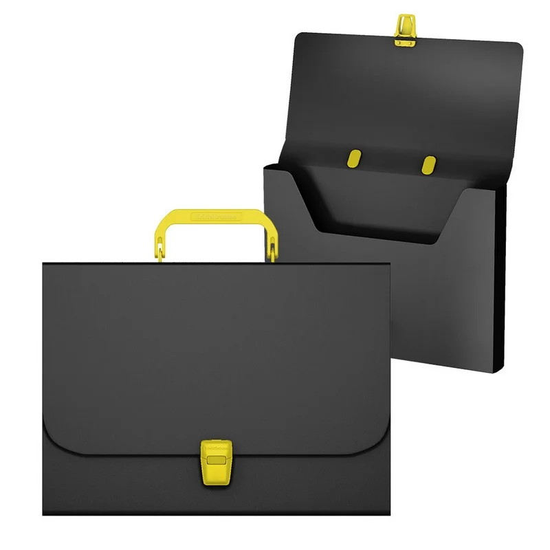 Портфель ErichKrause Matt Accent , А4, пластик, черный с желтой ручкой и замком