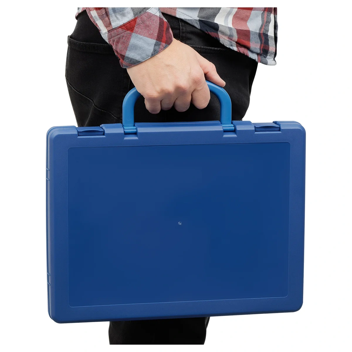 Портфель-кейс 'СТАММ' предназначен для переноса и хранения документации формата А4. Прочный корпус оснащён двумя надёжными защёлками и удобными ручками. Портфель-кейс размером 275*365*50 мм вмещает 450 листов. Упаковка: пакет с цветным вкладышем. Цвет - синий.