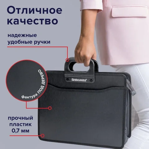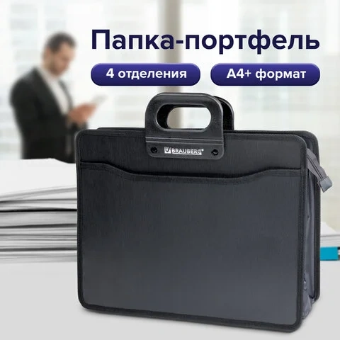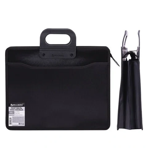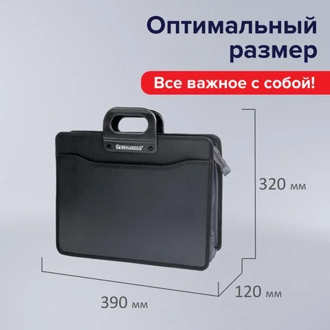 Портфель пластиковый Brauberg черный, 390х320х120мм, 4 отделения
