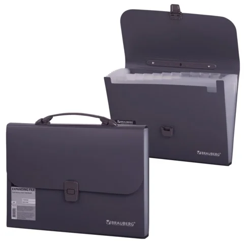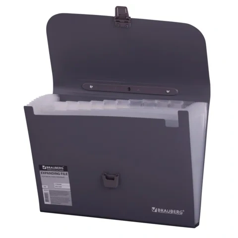 Портфель пластиковый Brauberg Comfort серый, 13 отделений