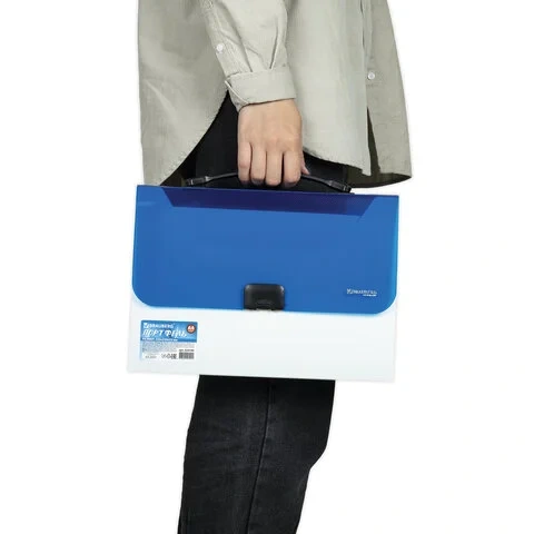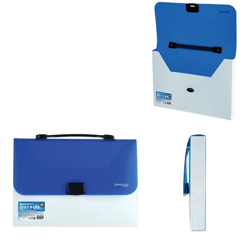 Портфель пластиковый Brauberg Income бело-синий