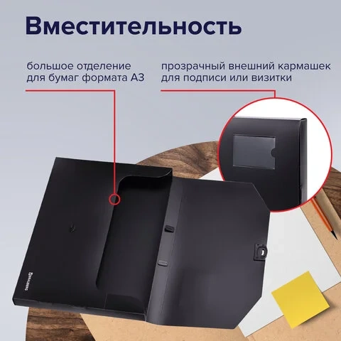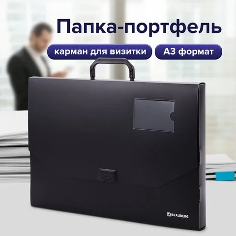 Портфель пластиковый Brauberg Портфолио черный, без отделений