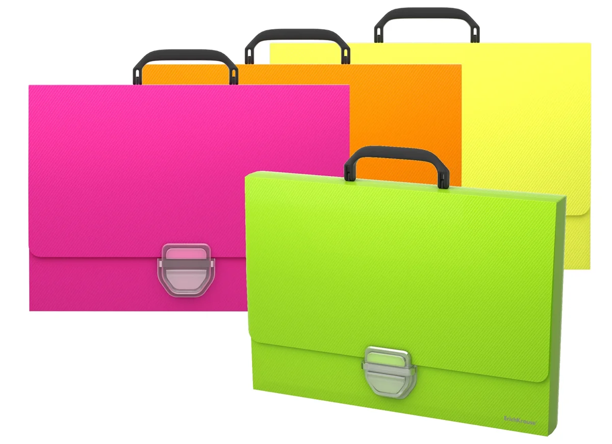 Портфель пластиковый Erich Krause Glance Neon А4, 1 отделение, ассорти