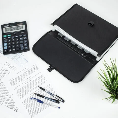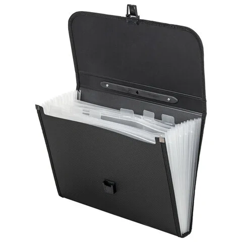 Портфель пластиковый Staff черный, 370х256х32мм, 6 отделений