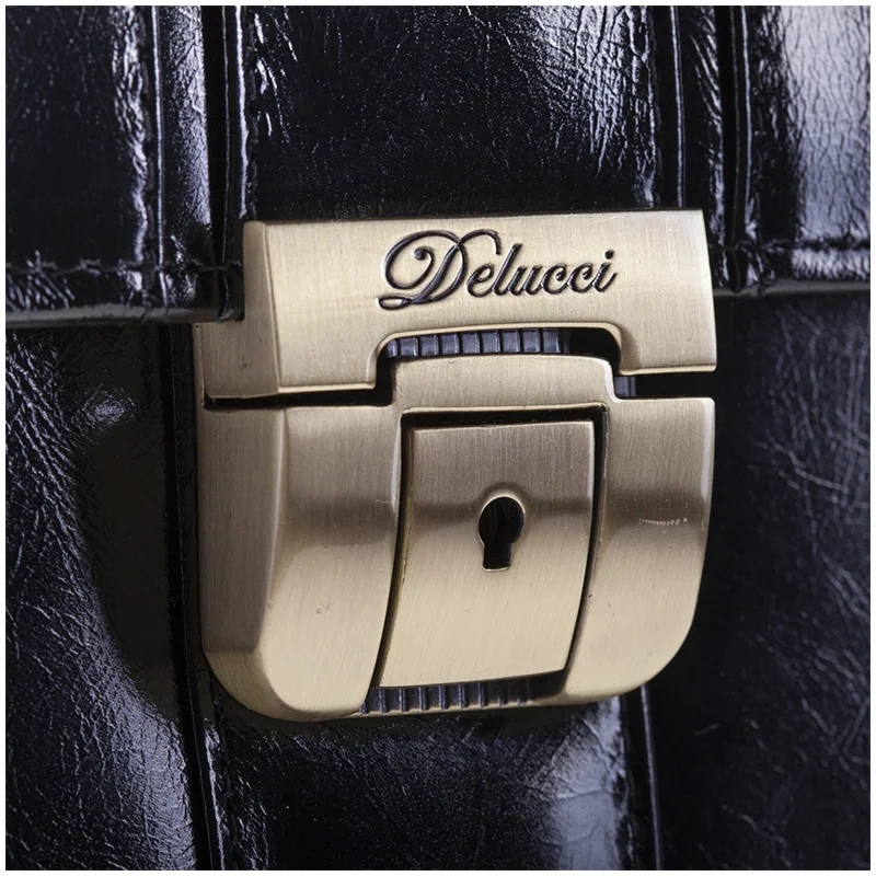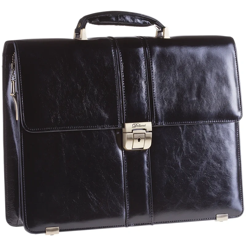 Портфель Delucci Гиперион 2 отделения, черный, натуральная кожа