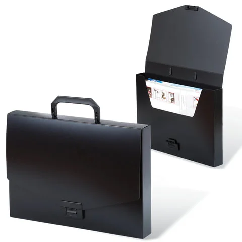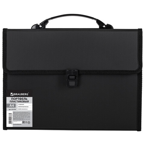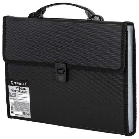 Портфель пластиковый Brauberg Портфолио черный, 3 отделения