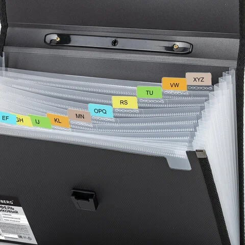Портфель пластиковый Brauberg черный, 332х292х32мм, 13 отделений