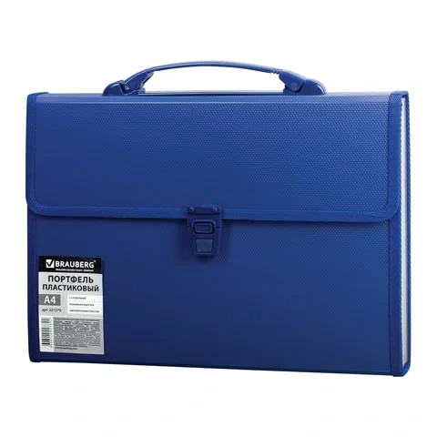 Портфель пластиковый Brauberg синий, 332х292х32мм, 13 отделений