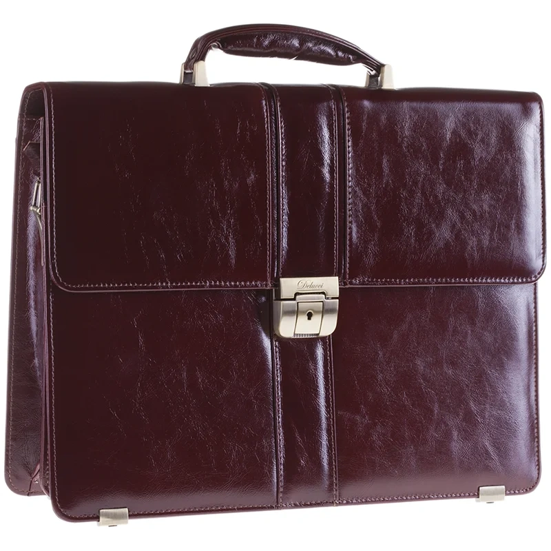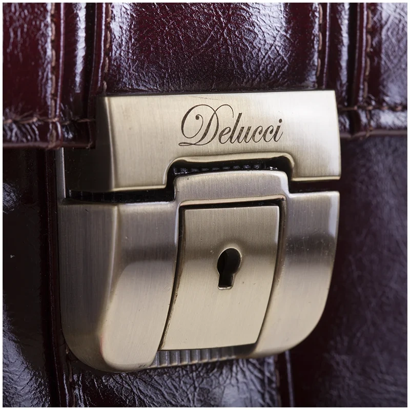 Портфель Delucci Гиперион 2 отделения, темный коньяк, натуральная кожа
