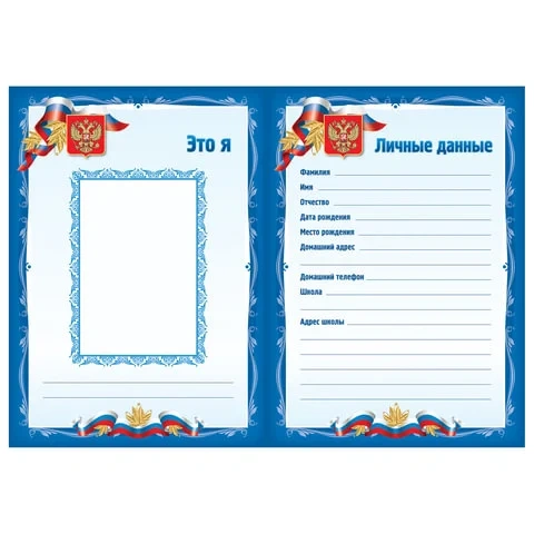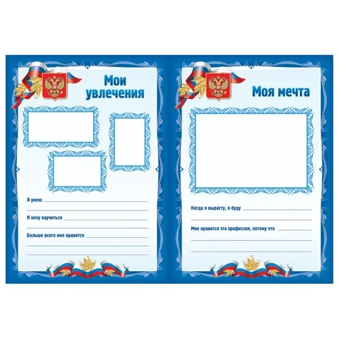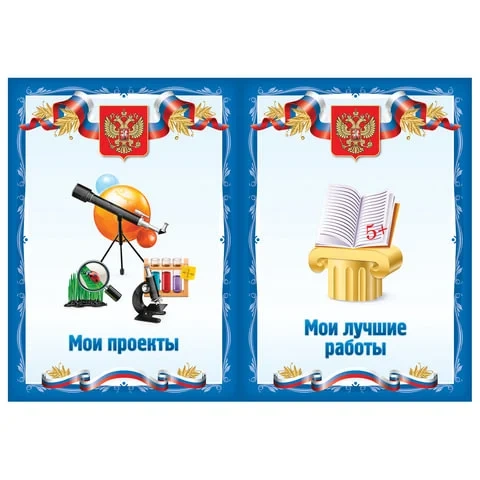 Портфолио школьника формата А4 вмещает до 32 листов. Материал обложки - мелованный картон, материал вкладыша - мелованная бумага. Имеет титульный лист, содержание и состоит из 4 разделов. 1 раздел – Мой мир, который содержит темы: Это я, Личные данные, Моя семья, Режим дня, Мой город, Мои друзья, Мои увлечения, Моя мечта, Мои питомцы. 2 раздел – Моя школа который содержит темы: Моя школа, Безопасный маршрут для школы, Мои учителя, Мой класс, Расписания уроков, Дополнительные занятия, Общественная деятельность. 3 раздел – Мои успехи в который входят темы: Мои проекты, Мои лучшие работы, Мои достижения, Мое творчество, Книги, которые я прочитал. 4 раздел – Мое свободное время который содержит темы: Как я провожу каникулы, Школьные праздники, Экскурсии, Мои успехи. Отзывы и пожелания.