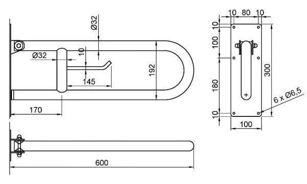 Поручень Nofer откидной нержавеющая сталь, черный, 600мм, 15051.60.N