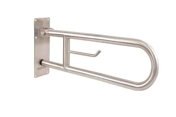 Поручень полукруглый для людей с ограниченными возможностями 800 мм из нержавеющей стали AISI304 матовый. С держателем для бумаги. Полукруглый откидной поручень идеально подойдет для комплектации практически любого санузла для людей с ограниченными возможностями. Максимальная нагрузка на эту модель составляет 120 кг.
