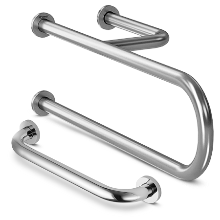Поручень полукруглый для людей с ограниченными возможностями изготовлен из нержавеющей стали AISI304. Он оснащен держателем для бумаги и предназначен для обеспечения безопасной поддержки при передвижении.