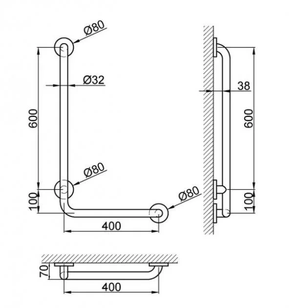 Поручень угловой 90° правый для людей с огр. возможностями 850 мм белый. Изготовлен из стали AISI 304. Имеет 3 точки крепления. Поручень предназначен для установки в правый угол и отлично подойдет как для установки в санузлах, так и в душе. Данный поручень изготовлен из эмалированной стали, которая предварительно окрашена в белой цвете и блаодаря нетральному цвету удачно впишется в любой интерьер!